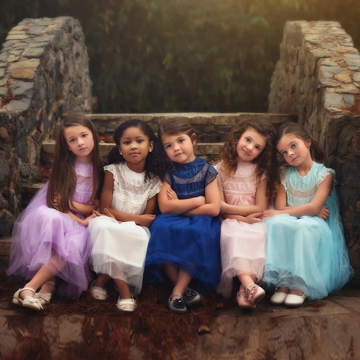 This dress is absolutely stunning! The bodice features soft, feminine ruffles and lace that compliments the layers upon layers of ethereal tulle on the skirt. This dress is fully lined with a back-zip and provides maximal comfort coupled with great style. 100% cotton contrast and 100% poly-self. Machine washable, line dry.
