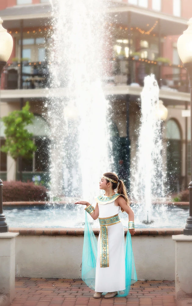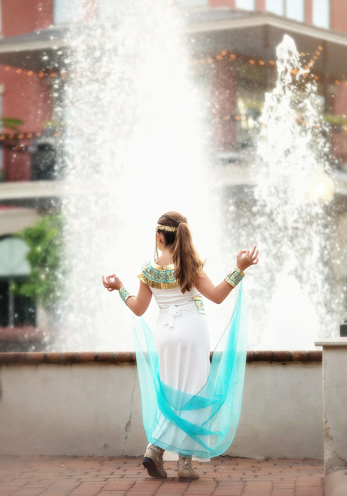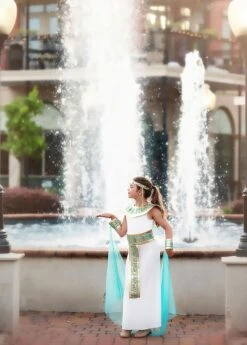 She will be the Queen of the Nile in this darling 6-piece set! Includes dress, headpiece, and removable cape, cuffs, belt and collar. The perfect get-up for all of her dress-up adventures. Machine wash DRESS only, hang dry.