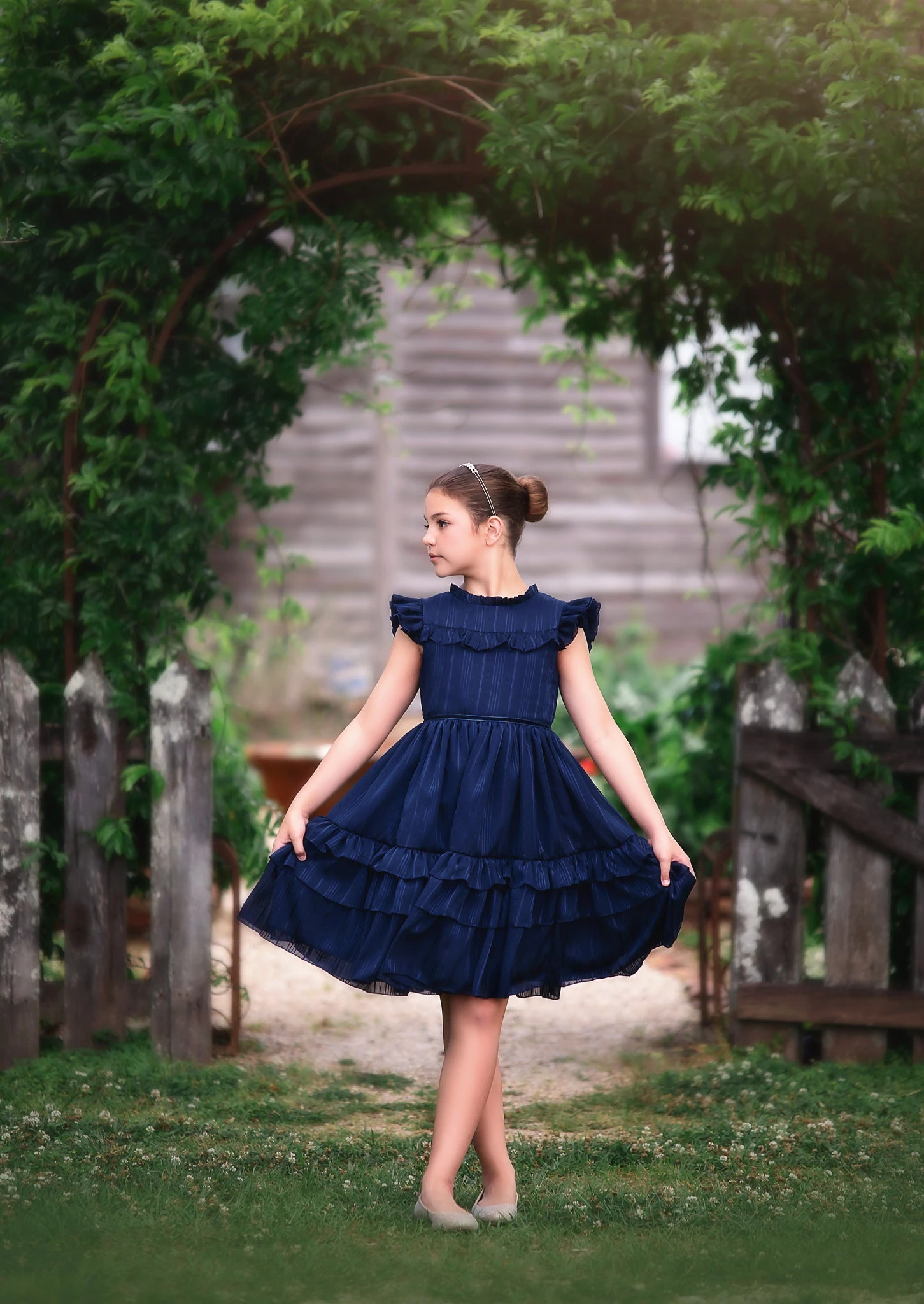 Bountiful layers of ruffles make for an oh so twirly dress, perfect for her most special of occasions.