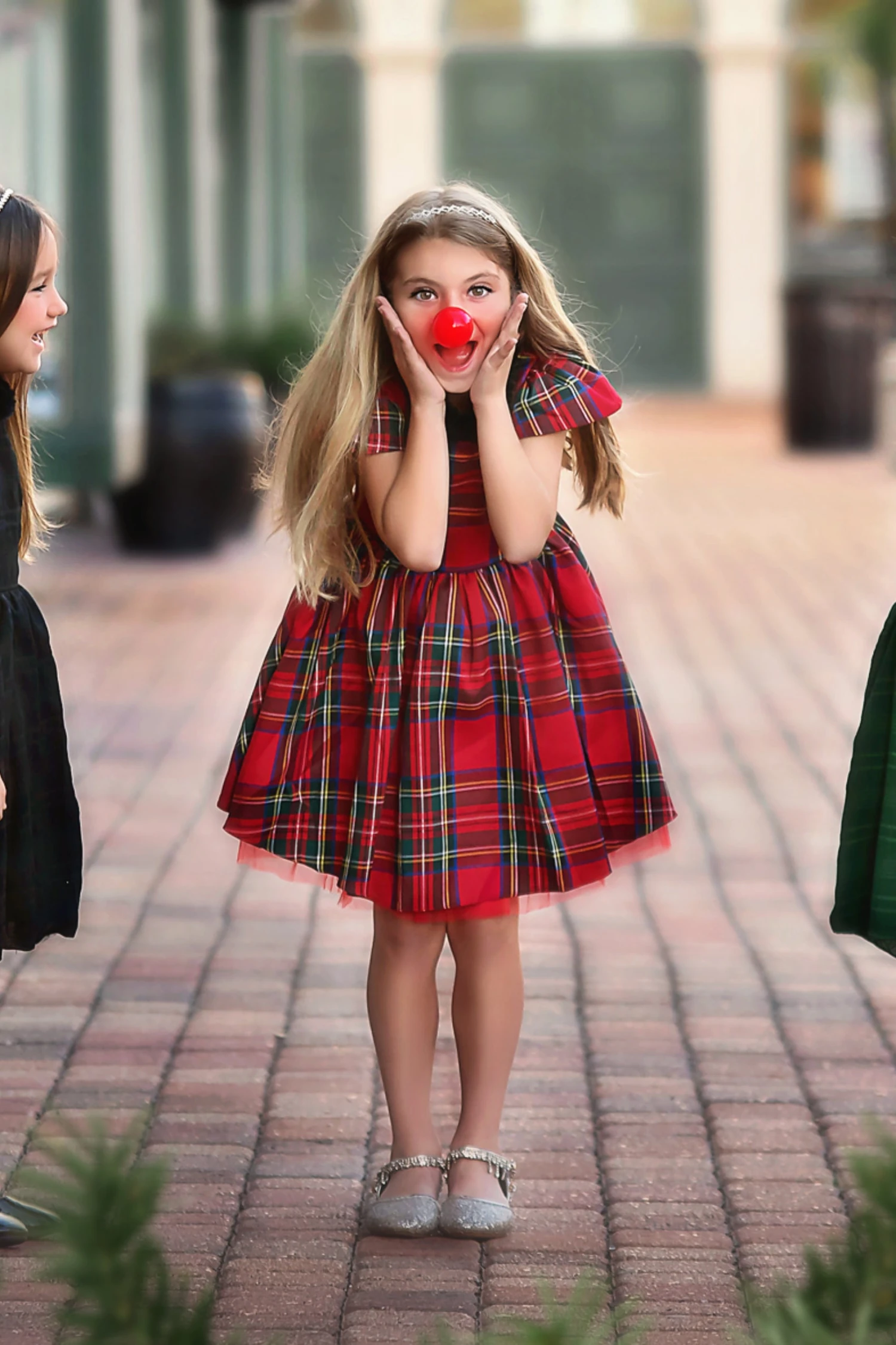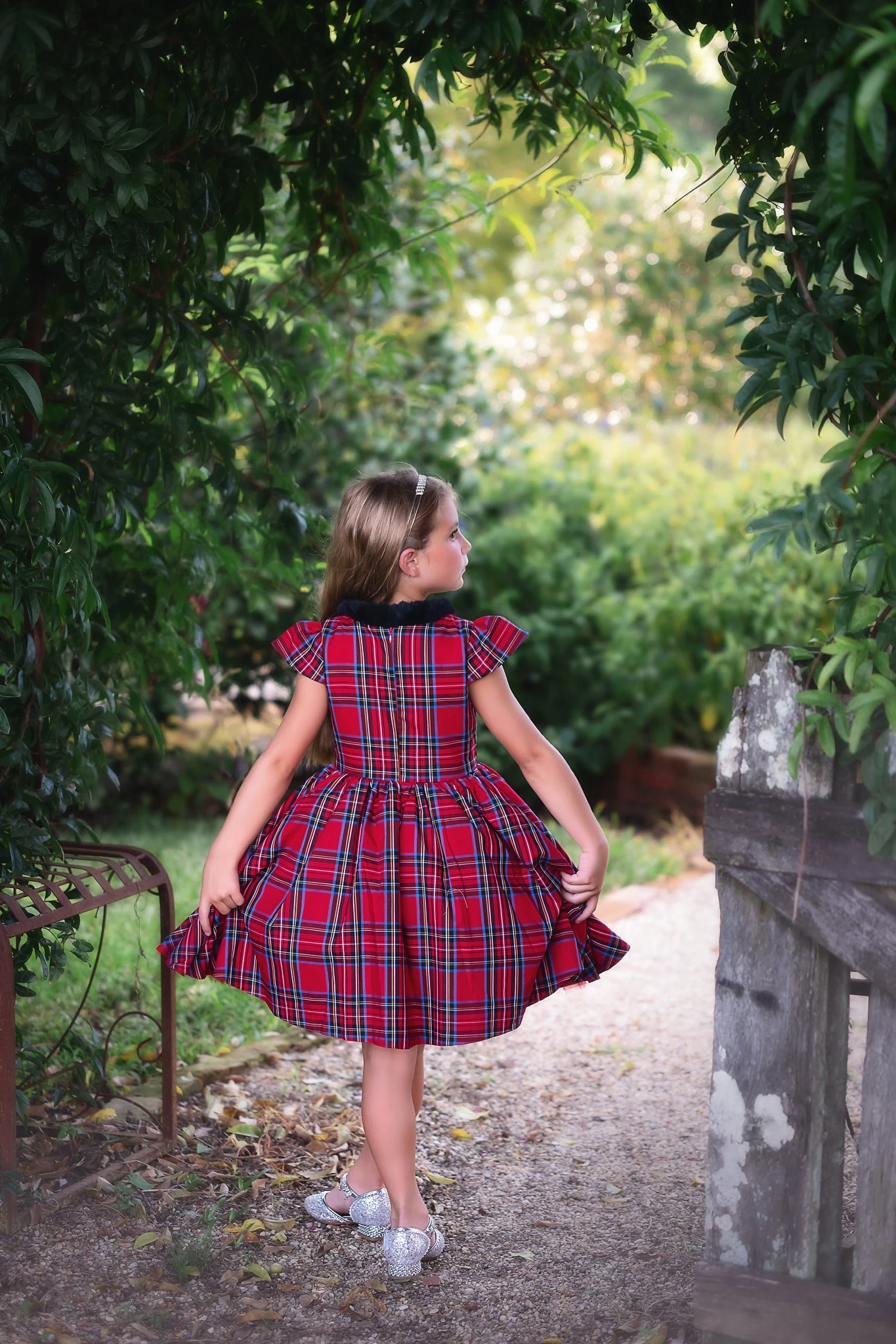 Our most perfect holiday dress yet, our take on a classic a-line cut features a fur collar and cap sleeves. The stunning tartan fabric makes and just the right amount of poof in the skirt makes for a stunning entrance both coming and going.
