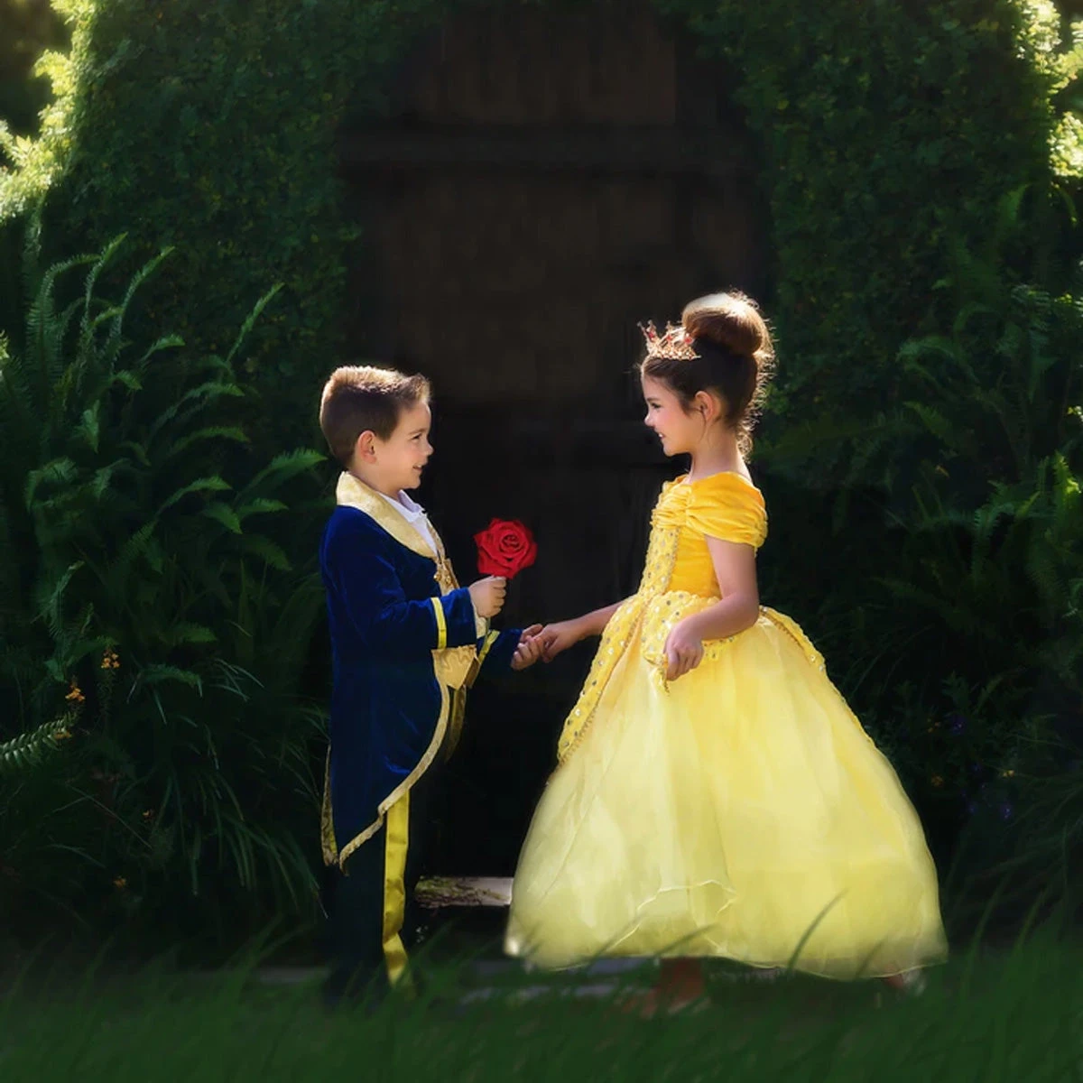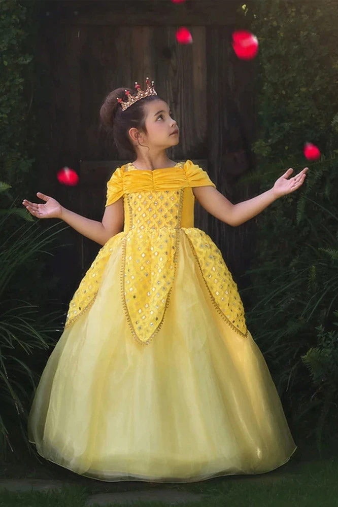 Perfectly sweet and oh so twirly, this regal princess gown with have your girl in a twirl! The soft velvet bodice and sleeves lead to a sequined ribbon skirt, layered with bountiful tulling. Like all of our dress up, this gorgeous gown is fully lined with soft cotton and back zips. No glitter is used on any of our products. Machine wash, hang dry.