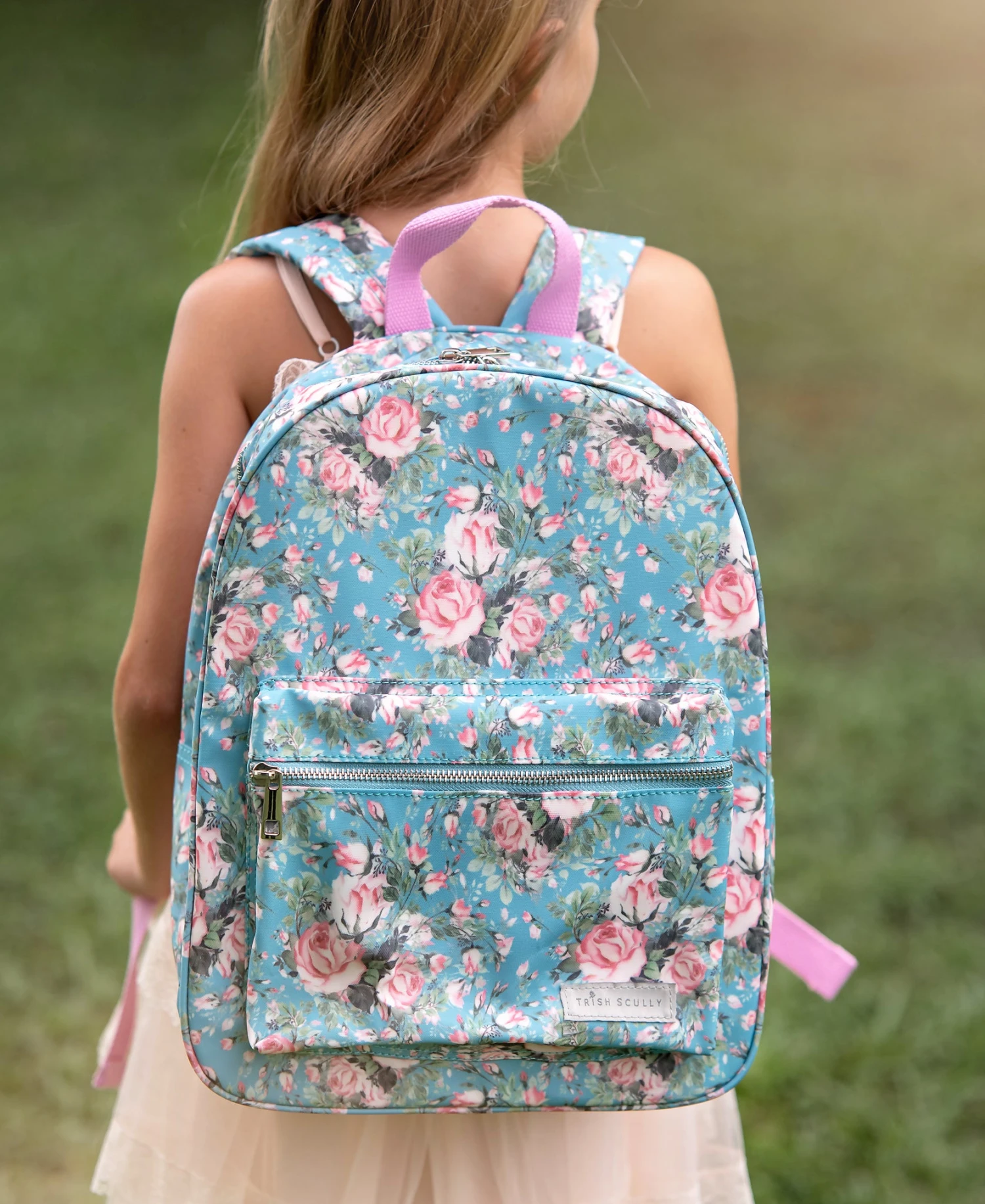 This darling floral print backpack features a front pocket for all of her favorite keepsakes and essentials. Perfect for school, play, sleepovers and more! Includes adjustable straps for the perfect fit.
